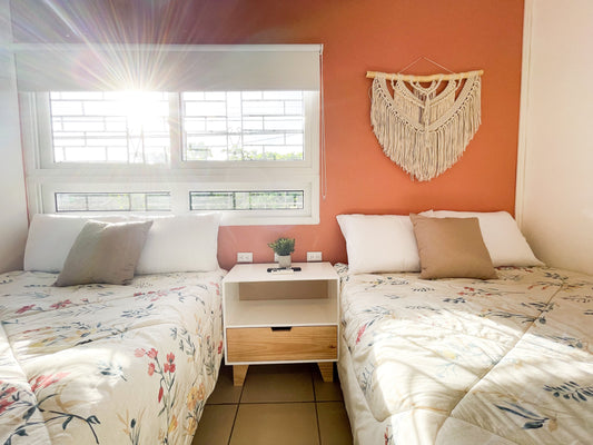 Oasis Naranja: Habitación con dos camas matrimoniales, AC y baño privado