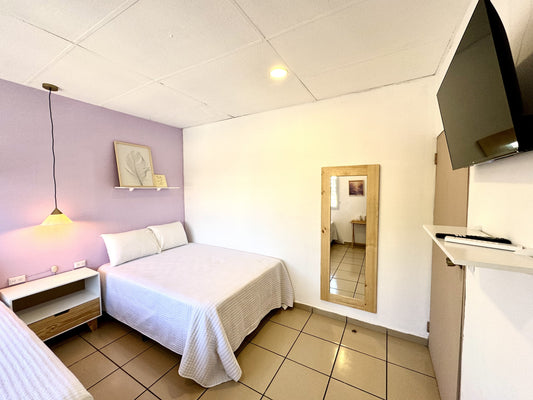 Oasis Lila: Habitación con dos camas matrimoniales, AC y baño privado